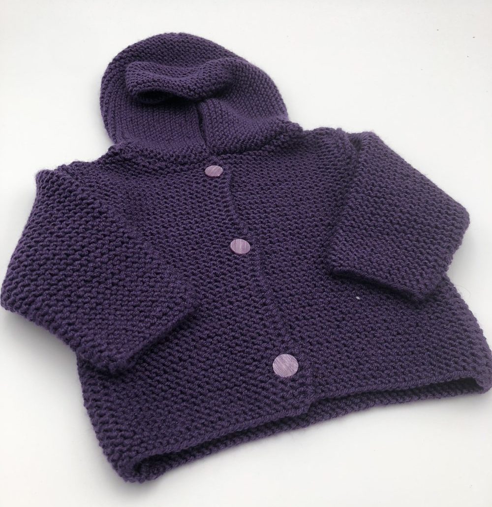 Jaquette à capuche point mousse