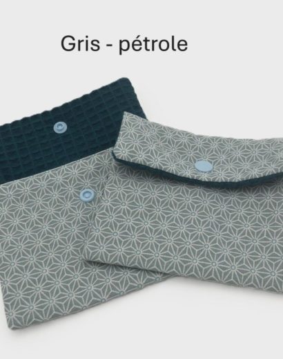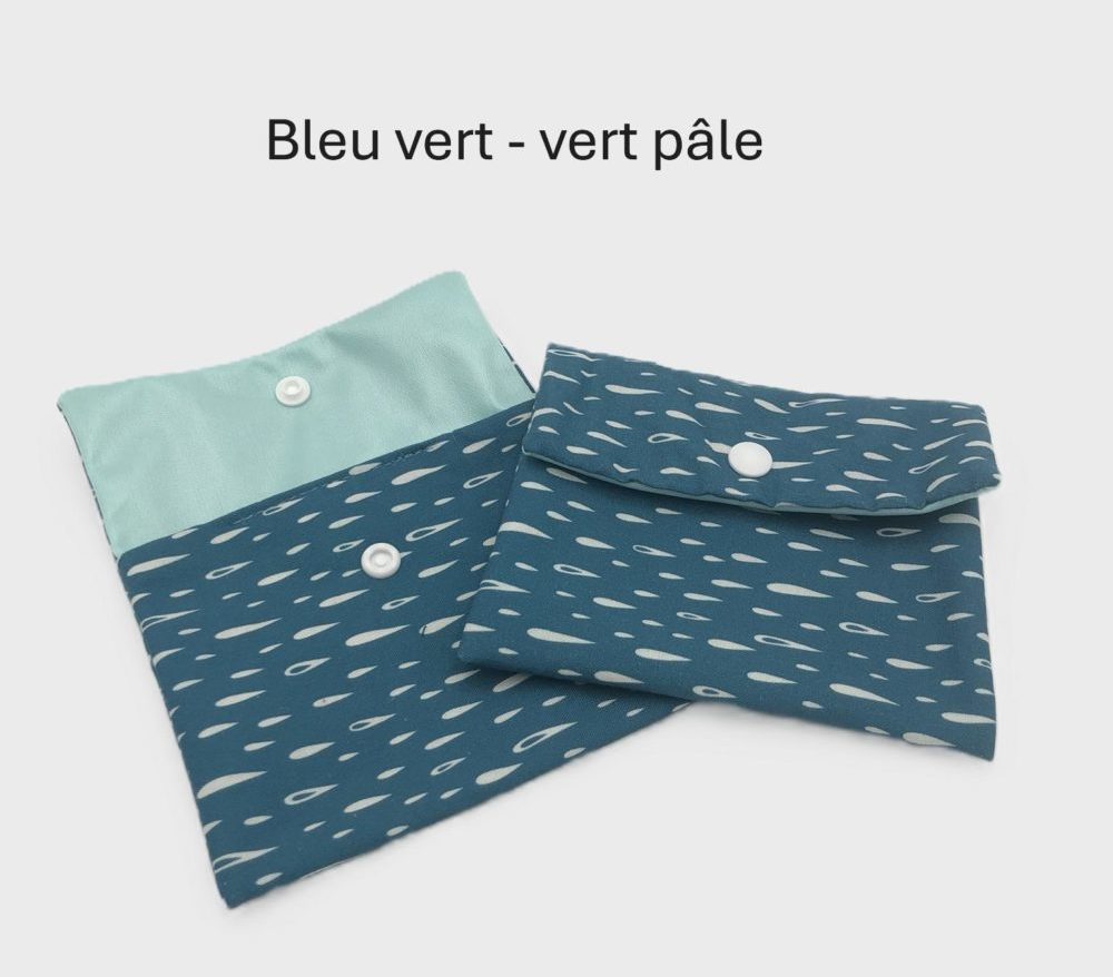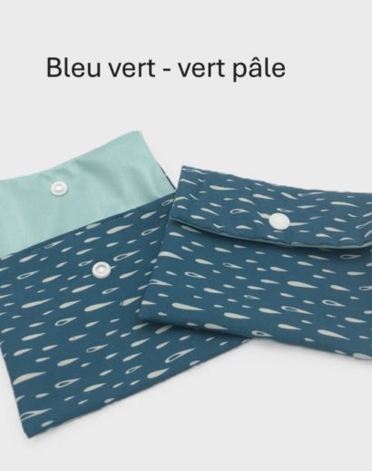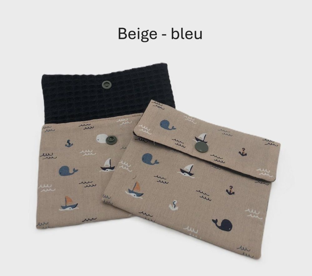 Beige – Nid d'abeille blanc, Beige – Nid d'abeille bleu, Bleu – Eco-PUL rouge, Bleu – Eco-PUL turquoise, Bleu clair – Eco-PUL bleu, Bleu vert – Eco-PUL vert pâle, Bordeaux – Eco-PUL vert, Gris – Nid d'abeille pétrole, Vert – Nid d'abteille vert